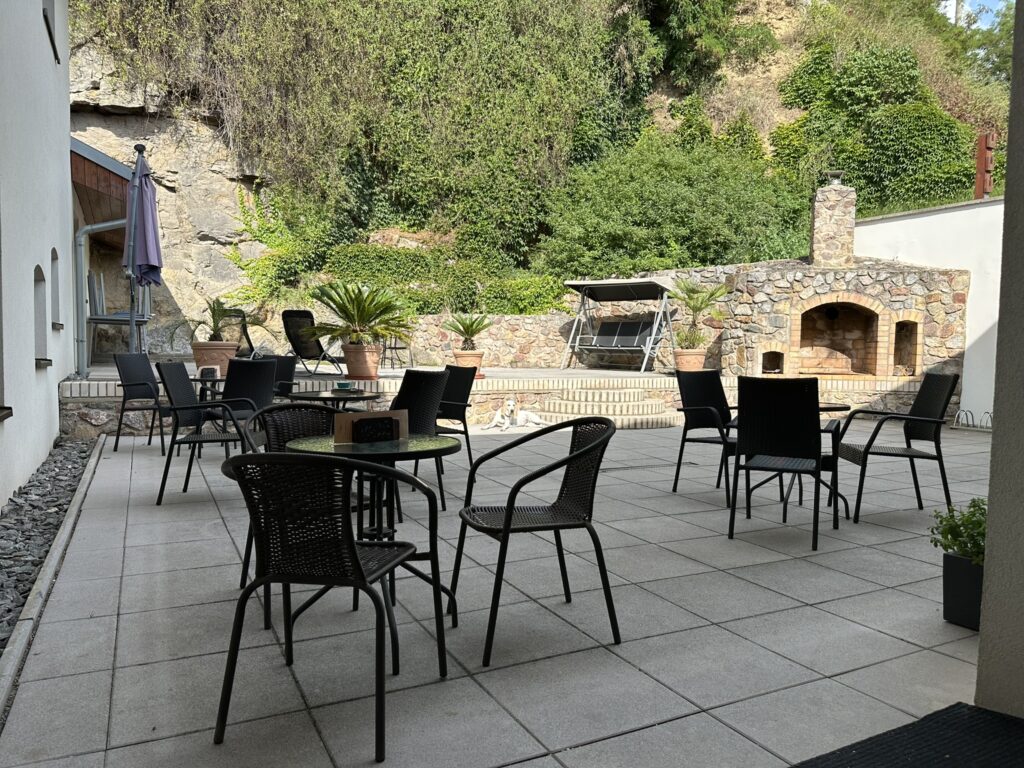 Kavárna Laskala café se nachází pod horou Květnice s jedinečnou zahrádkou v toskánském stylu s vodní fontánkou a krbem.
